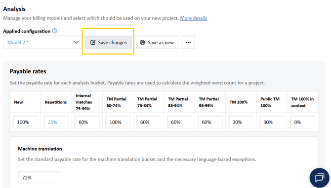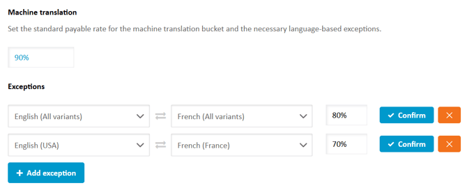 You also have the option to customize the payable rate for machine translation and set exceptions for specific language pairs.