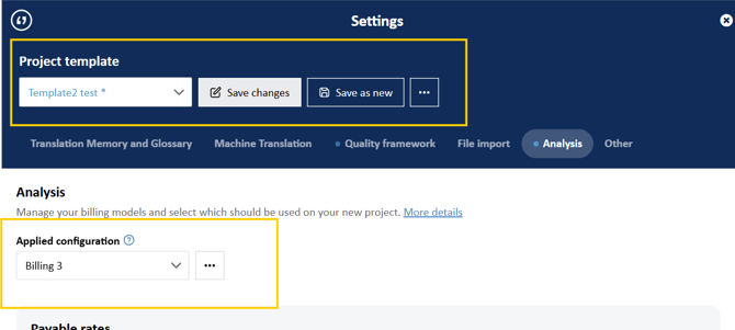 To use a custom billing model in a project template, first save the settings in a configuration (either new or existing).