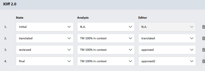 For XLIFF 2.0 files, behavior selection is limited to the state values listed in the standard.