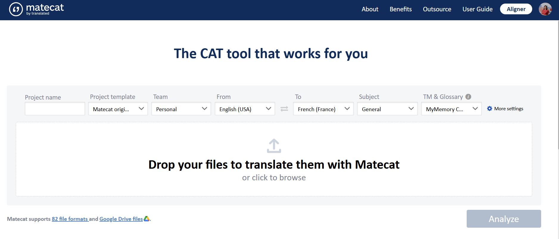- Open www.matecat.com
