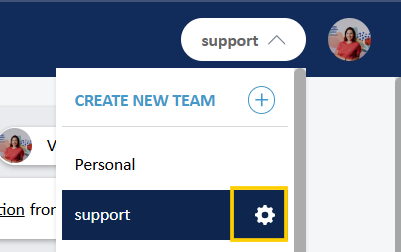 To create a new team, click on Personal in the top right-hand corner of the Management panel and select the option Create New Team.