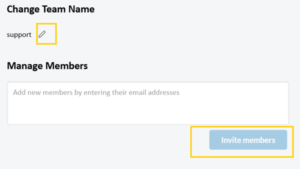 Team members can see and manage all the team’s projects. They can also invite and remove other members and change the team name.
