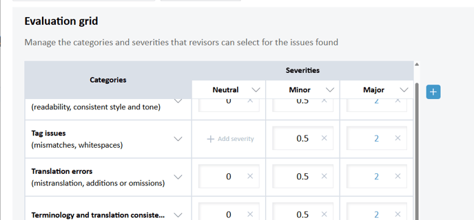 A quality framework is a combination of error categories and severities used to label issues found in a translation, along with Error per Thousand Words (EPT) thresholds. More details about these combinations are provided below.