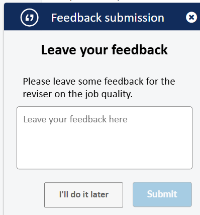 At the end of your revision, you can send feedback to the reviser on the quality job.